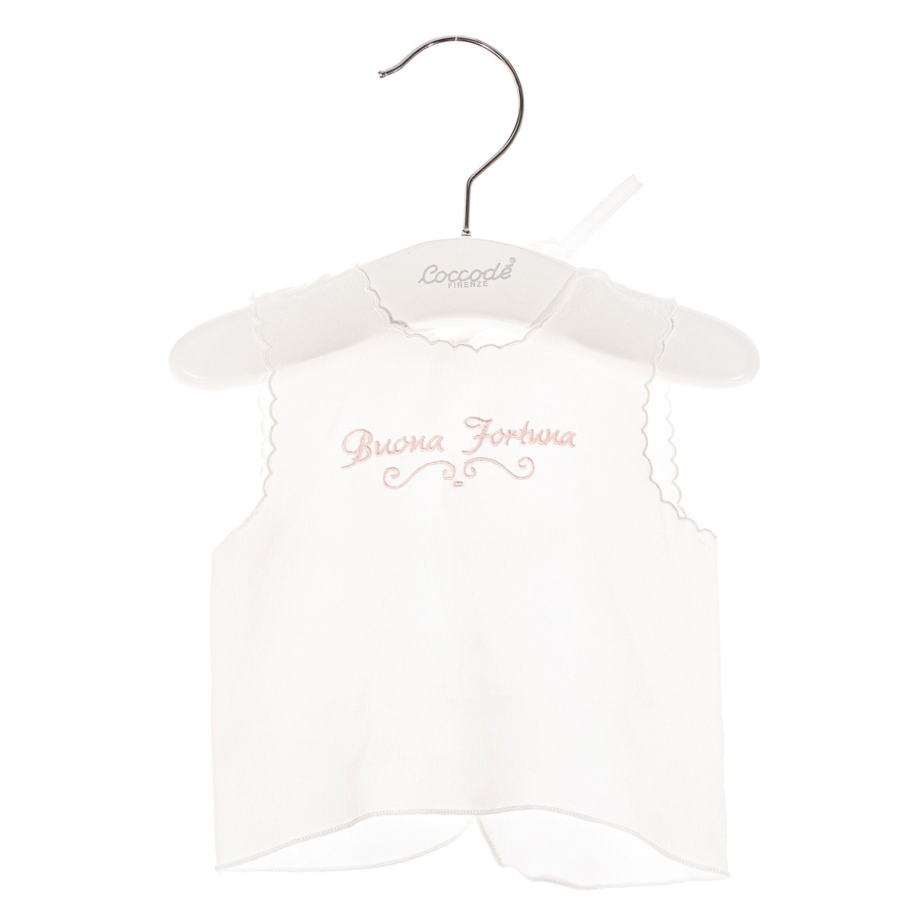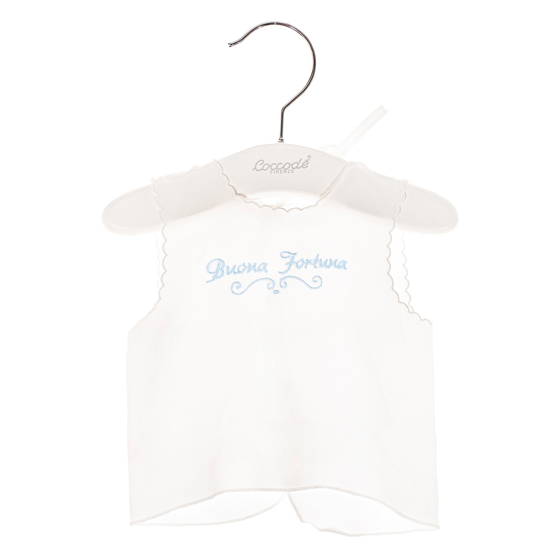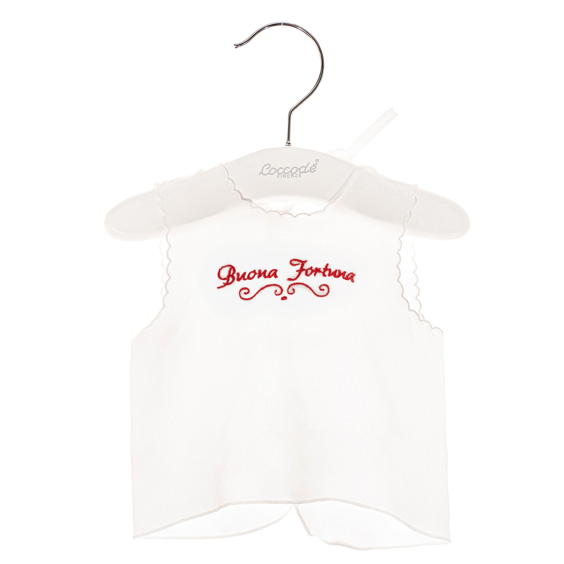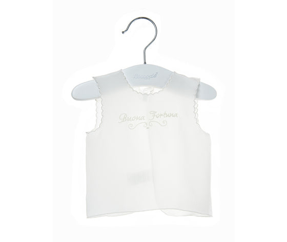 Camicino della Fortuna in seta 100%. Color panna con ricamato "Buona Fortuna" di diversi colori. Taglia Unica.