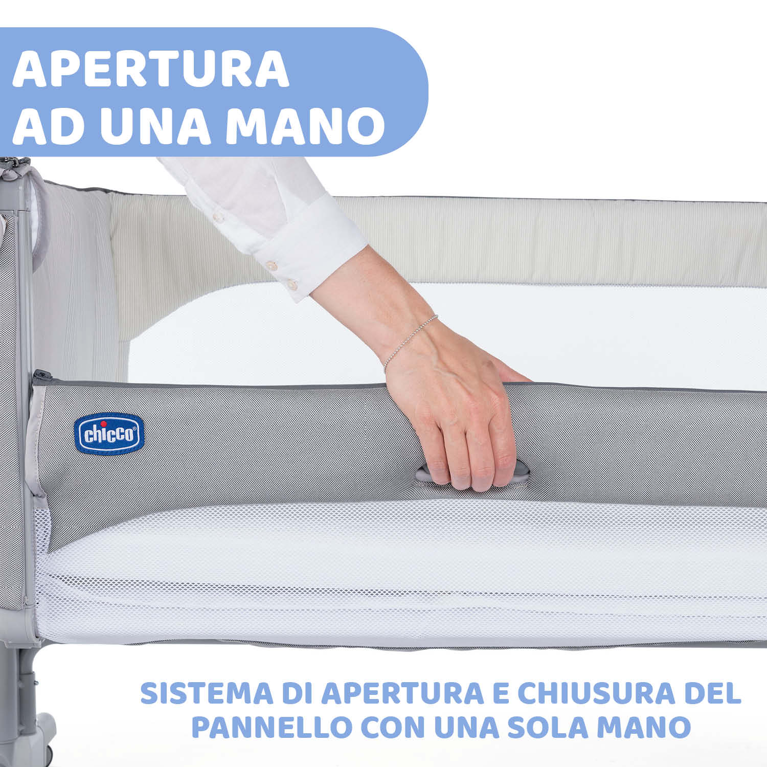 - In caso di utilizzo come culla tradizionale, Chicco Next2Me Magic Evo è dotata della modalità dondolio per cullare il bambino dolcemente.